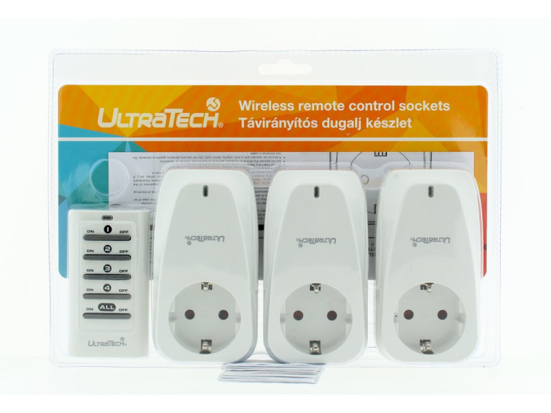 UltraTech távirányítós dugalj készlet, 3+1, 1150W/230V3 db dugalj+1 db távírányító, 30 m-es táv