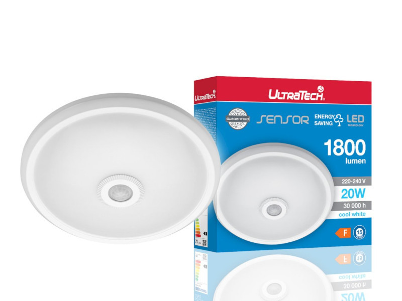 UltraTech mozg.érzékelős lpt LED, infravörös 20W 1800lm 180/360° IP20 290 x 57 mm