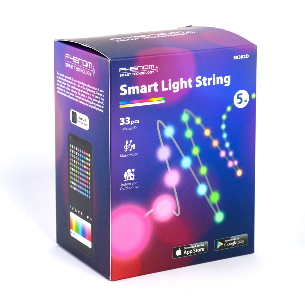 Fedezze fel az okos világítás új dimenzióját ezzel a kiváló minőségű, magával ragadó smart fényfüzérrel. A 33 db LED-ből álló fényfüzér lenyűgöző fényhatást nyújt, amelyet egyetlen ujjmozdulattal irányíthat az ingyenesen letölthető mobilalkalmazás vagy a tartozék távirányító segítségével.