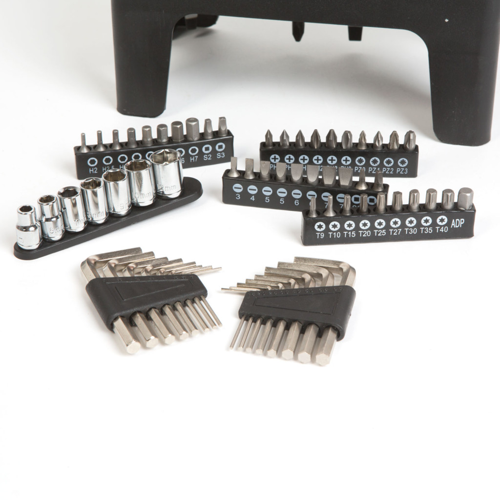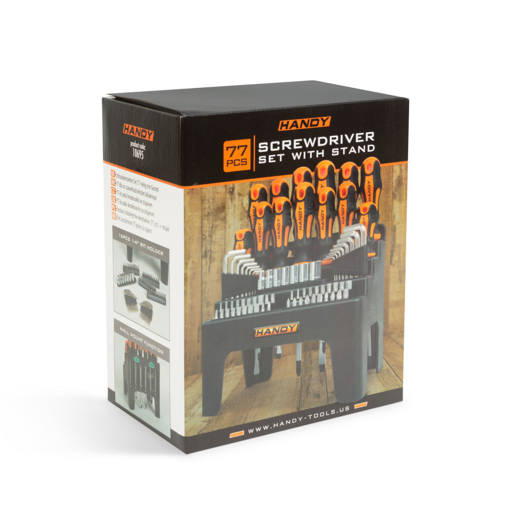 Szinte minden szerelési folyamatot kielégítő, nagyméretű csavarhúzó készlet. A szett tartalmaz 12 db csavarhúzót, 40 féle bitfejet, 7 krovafejet, 16 db imbuszkulcsot, valamint a szerszámok áttekinthető tárolására szolgáló tartókonzolt. A konzol kompakt méretének köszönhetően garázsának, műhelyének asztalán nem foglal sok helyet, igény esetén falra is rögzíthető a két akasztólyuk segítségével. A csavarhúzók mindegyike csúszásmentes, két komponensű, a kényelmes és biztonságos használatot elősegítő ergonomikus nyéllel rendelkezik. Ideális felhasználása lehet háztartási barkácsoláskor, kerékpárok, autók szerelésekor és egyéb szerelési folyamatok során.